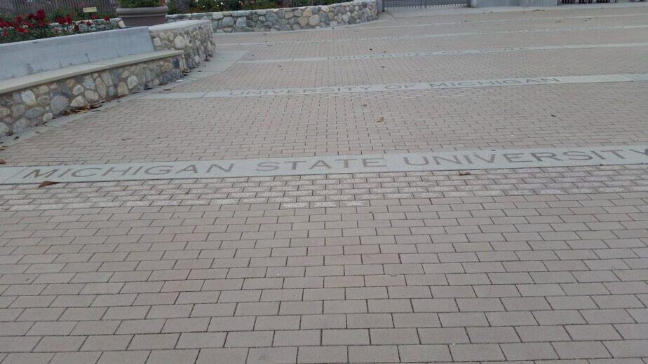Rose Bowl Entrance MSU Bricks Big Bang Street Sign Pasadena real estate Free Speech Zone Notice