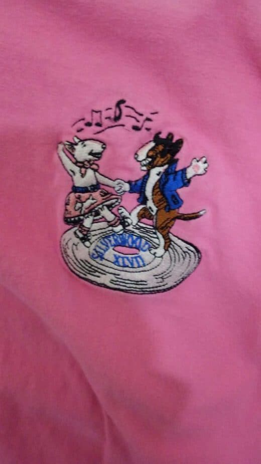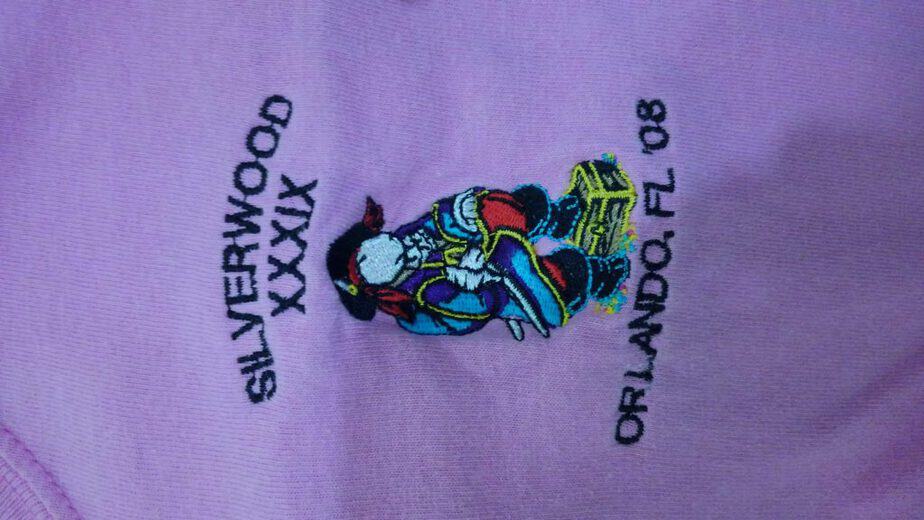 The embroidered logos (Orlando 2008 and Sawmill 2016) were also offered in silkscreen versions, embroidering also requires distinct separation of colors.